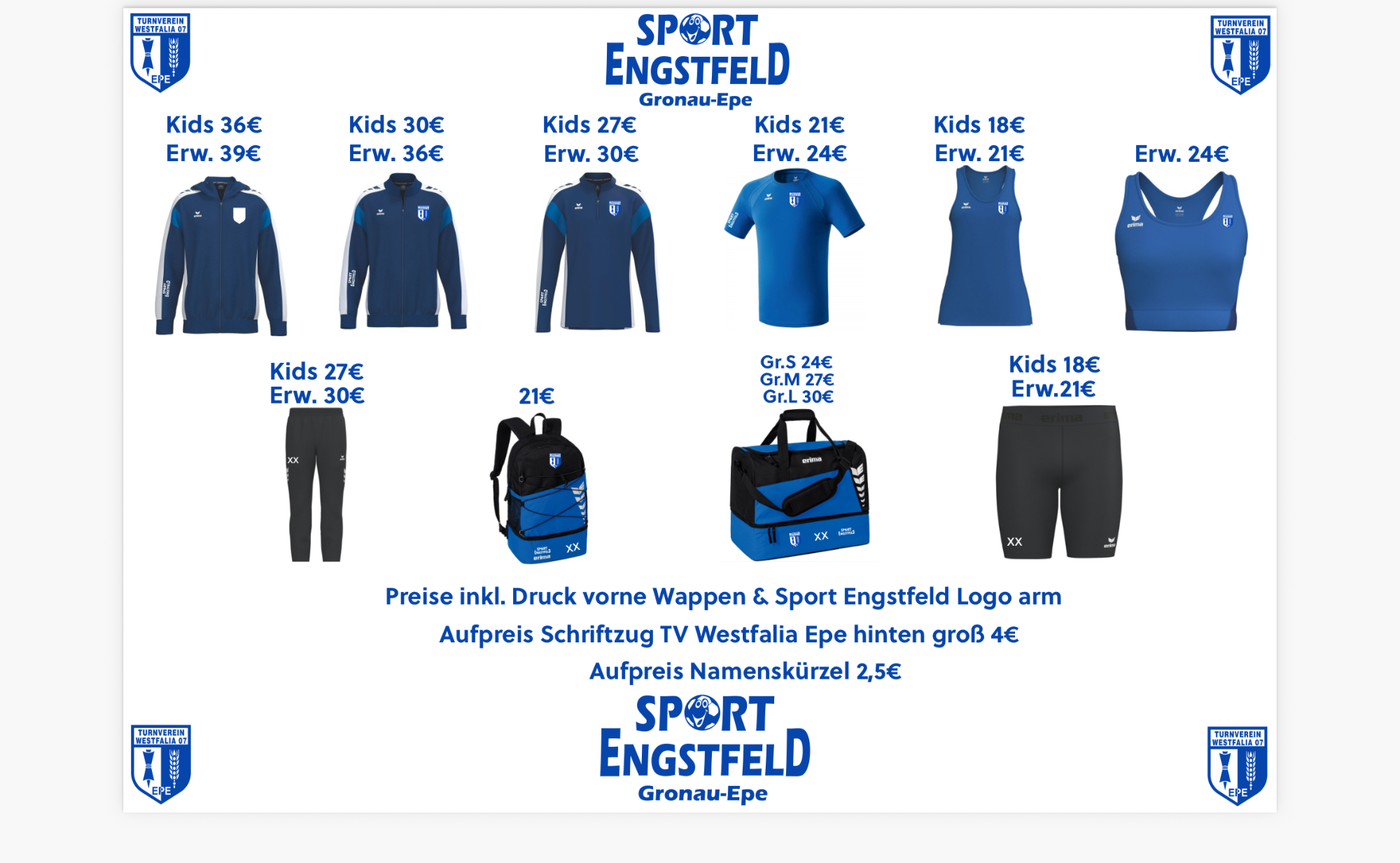 Sport Engstfeld bietet verschiedene Sportkleidung der Marken Jako, Erima, Hummel und Adidas mit einem Vereinsrabatt an.